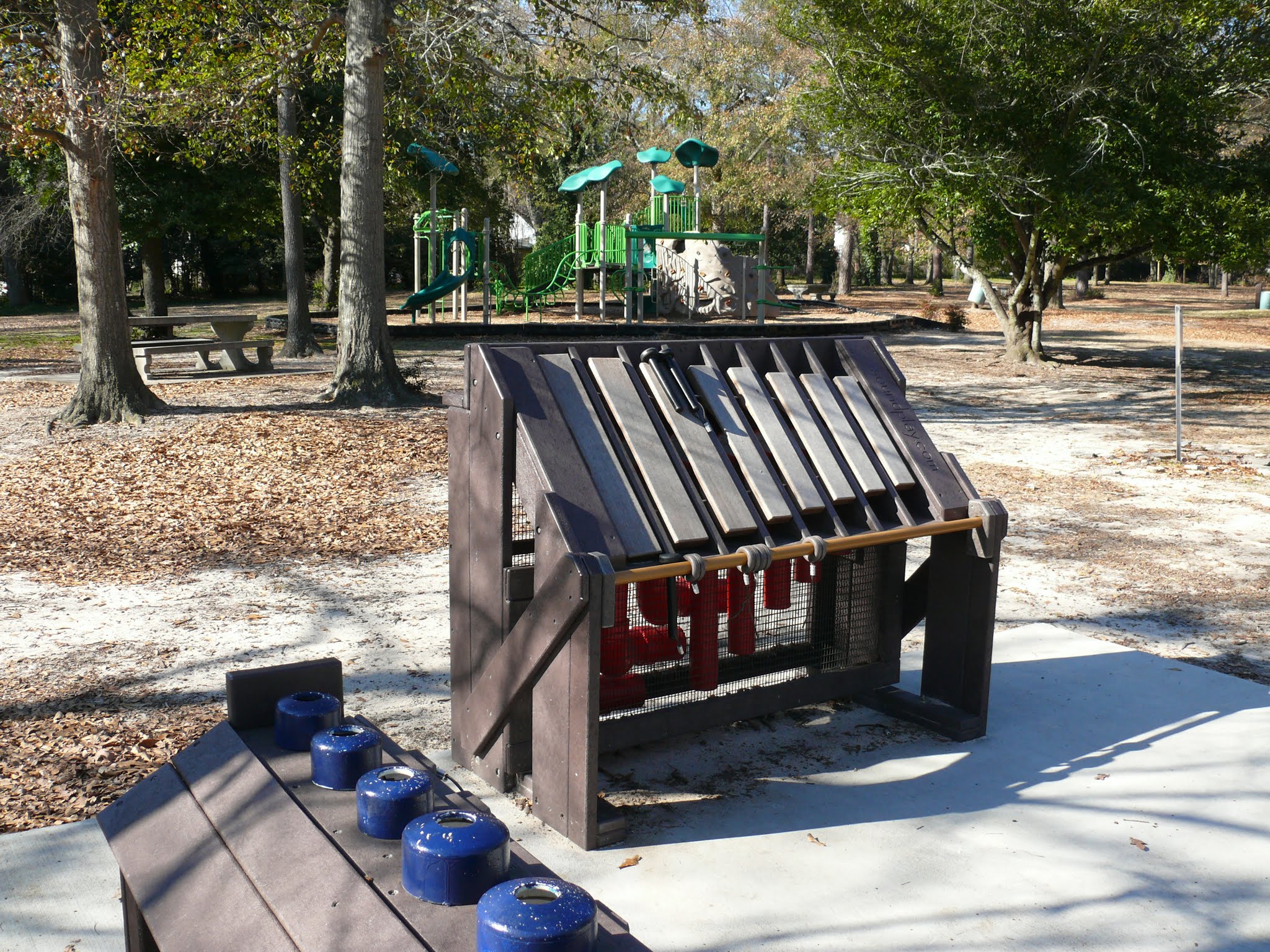 The Pendleton King Park Children’s Sculpture Garden was designed and built by Monte Sano Elementary School fourth and fifth graders in 2007. These musical instruments are a part of the playgrounds at the Pendleton King Park and create a fun and interactive place for children the explore music. The soft music created by the instruments can frequently be heard throughout the upper part of the park.